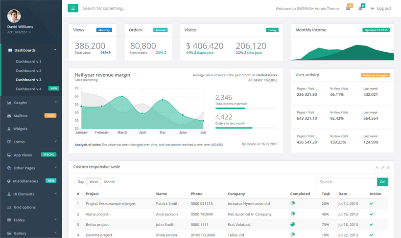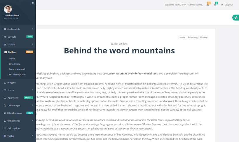 INSPINIA - Responsive Admin Theme is provided with two main layouts